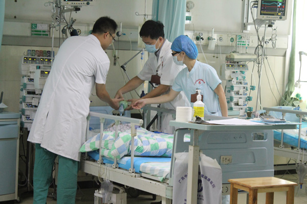 医生护士们在照顾李哲民
