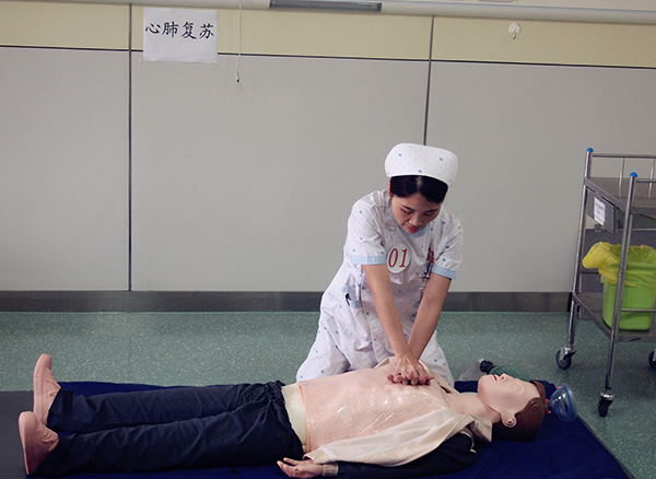 参加本次竞赛的护士共9名,竞赛项目为单人徒手心肺复苏和拔火罐(走罐)。按参赛序号,两项竞赛交叉进行。赛场上,选手们进行CPR时的急促呼喊声,迅速的专业抢救动作,让人紧张不已;走罐时,选手们一张张窝心的微笑,一句句温馨的问候,让人心生温暖……