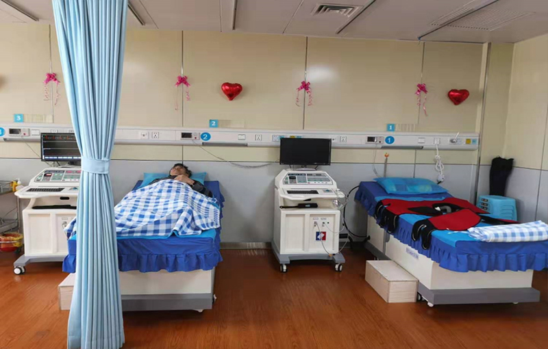 中心设有心脏康复专科门诊,每周二、周四上午出诊。目前,中心配备德国耶格心肺运动评估仪2台、功率踏车4台、增强型体外反搏仪2台、四肢联动康复训练仪1台、弹力带等康复设备,主要针对冠心病、心功能不全、高血压病、高脂血症、双心疾病患者,以“五大处方”为指导,以心脏康复中心为依托,对患者进行药物、运动、营养、心理、戒烟等方面进行综合评估,结合医院特色中医辨证施治,为患者提供系统中西医结合心脏康复咨询及诊疗服务,帮助患者回归生活、回归工作、回归社会,并通过健康教育、座谈等多种形式为患者提供医疗服务,提高患者对疾病、健康的认识。中心联合医院胸心血管外科、肝胆腺体外科等科室开展多学科联合协作联动,帮助术后患者早期康复,缩短住院时间,减少住院费用,并取得了阶段性成效。