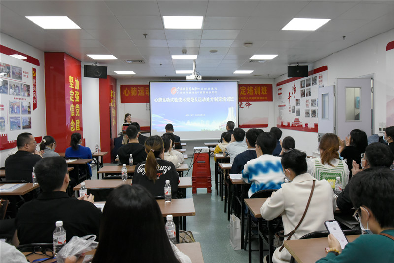 随后,南京中医药大学王磊教授、广西壮族自治区江滨医院张树锋副主任医师、广西中医药大学附属瑞康医院王丽副教授为学员们带来了精彩的授课。本次培训注重理论与实践结合,从8000余例运动心肺测试病例中挑选出经典病例分析和运动处方的制定,现场演示经典递增方案、恒定功率方案、验证峰值摄氧量方案3种不同方法的操作,6种有氧运动处方的制定方法及操作。培训注重将CPET的标准操作、数据解读结合运动处方的制定、实施,尤其是将马拉松爱好者心肺功能评估与指导的相关技术纳入课程,使得学员面向临床学会基本心脏康复专业理论和技术,既能掌握实用的心肺耐力评估与精准运动处方制定方法,又能在社会群众中推动体医融合、促进全民健康。