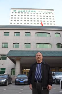 安连生教授在在新疆维吾尔自治区中医院门前留影