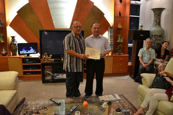 新加坡拳器道医疗保健药业董事长林春发先生为安连生教授颁发聘书