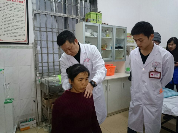 义诊中,医生们详细询问患者病史,仔细阅读影像资料,认真进行体格检查,发现许多群众患有颈椎病、腰腿痛、膝关节炎等不同程度的疾患,却不到及时有效的治疗。为此,安连生主任除了带领科室医生为患者进行手法治疗,还“授人以渔”, 对两江镇中心卫生院医师进行了全面的医疗技术指导。