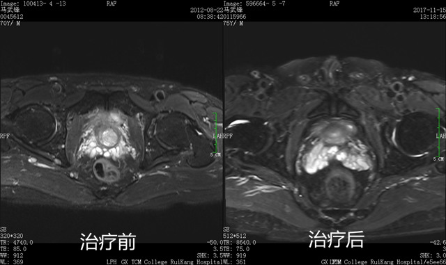 古稀之年的马先生2012年被确诊为前列腺癌,由于拒绝常规外科手术切除治疗,同年7月在瑞康医院接受了射波刀治疗,治疗后病情好转出院。8月时,马先生的复查肿瘤显示缩小,但继续服西药治疗时,仍有全身多处骨痛的情况,于是便改服中药调理。当时的马先生不仅全身骨痛,长期的病痛使马先生神疲乏力,体型消瘦,睡眠差,起夜多,梦多,活动后易出汗,同时怕冷易感冒,医院专家首诊辨证为:气虚血瘀,寒湿中阻,毒瘀内结,于是为马先生运用了健脾益气、温中化湿、化瘀散结、解毒抗癌的复法大方进行中医治疗。在连续服用药方两月后,马先生的精神及体力明显好转,疼痛消失,胃纳转佳,大便通畅,睡眠及易汗怕冷症状都得到了改善,极大地提高了生活质量,根据病情,便继续运用复法大方中药治疗,至今已逾5年半。现在,马先生每半年住院复查1次,病情稳定,影像学检查及生化检查均未见复发进展征象。一副中药,让饱受病痛折磨的马先生脱离苦海,也充分体现了发挥中医中药的抗癌效应具有积极意义。