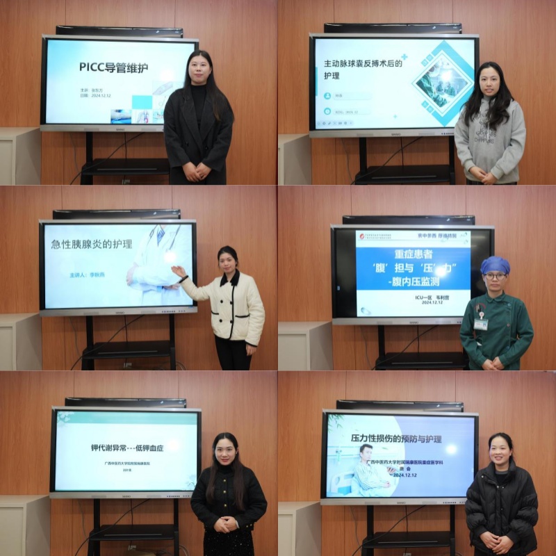 为强化重症专业知识掌握、精进教学技巧和能力,12月12日,重症医学科一区在病区举办了一场以“以赛促学 扬帆自我”为主题的授课比赛,科室7个护理亚专科小组积极响应,均选派中级、初级职称护士各1名参加比赛。大重症医学科主任、重症医学科一区主任(兼)伍民生,重症医学科一区副主任陈盛奎、护士长黄静铭、副护士长李亚茜,胃肠外科护士长李雪娟以及国际造口治疗师李鲜担任比赛评委,科室全体护理成员40余人观摩比赛。科室教学秘书梁海燕主持比赛。