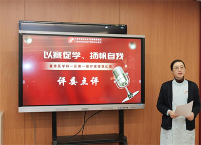 授课结束后,陈盛奎副主任与李雪娟护士长作精准点评。他们从授课内容的科学性、医护知识差异性、课件制作逻辑的严谨性、教学方法的创新性以及授课过程的吸引力等方面做了专业、精准、深入的点评,让参赛选手醍醐灌顶、豁然开朗。