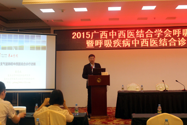 2015年11月6日至8日,由广西中西医结合学会主办,广西中医药大学附属瑞康医院承办的第一届第二次广西中西医结合学会呼吸病学分会学术大会暨呼吸疾病中西医结合诊疗新进展学习班在南宁凤凰宾馆顺利举行。中国中西医结合学会呼吸病学专业委员会主任委员、复旦大学中西医结合研究所所长董竞成教授,广西中西医结合学会秘书长李方,我院副院长韦思尊等领导和专家出席会议。来自广西全区二、三级西医、中西医结合医院的200多名知名呼吸病专家学者和医师汇聚一堂,共同分享中西医结合诊治经验和新进展。我院重症医学科二区主任谭玉萍教授主持会议并分享学术经验。
