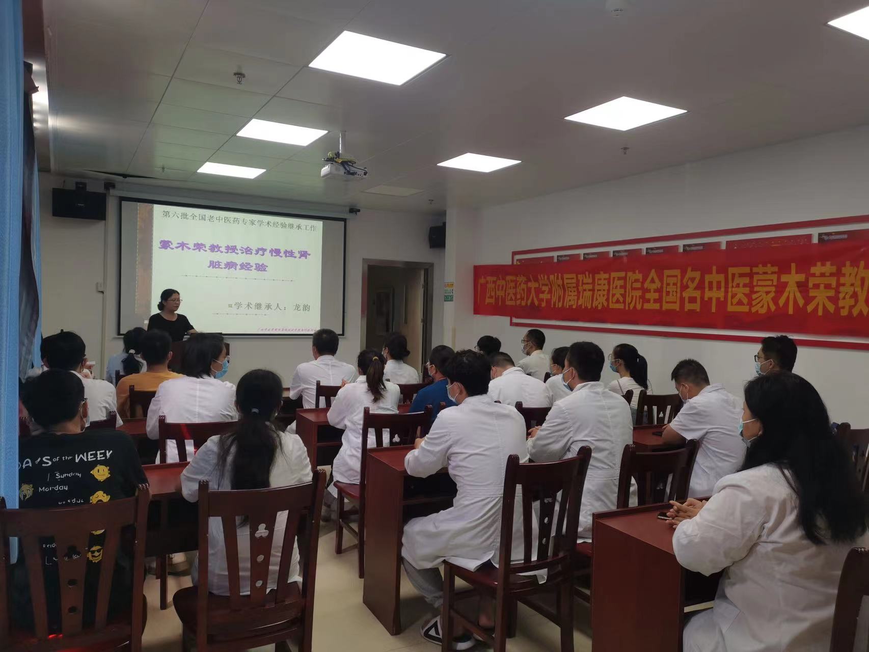 9月24日工作室成员龙韵副主任医师、奉红梅副主任医师及叶庆莲主任医师(广西名老中医)赴秀湖社区卫生服务中心开展广西名中医蒙木荣教授学术经验传承培训班。