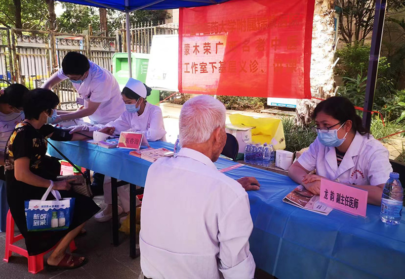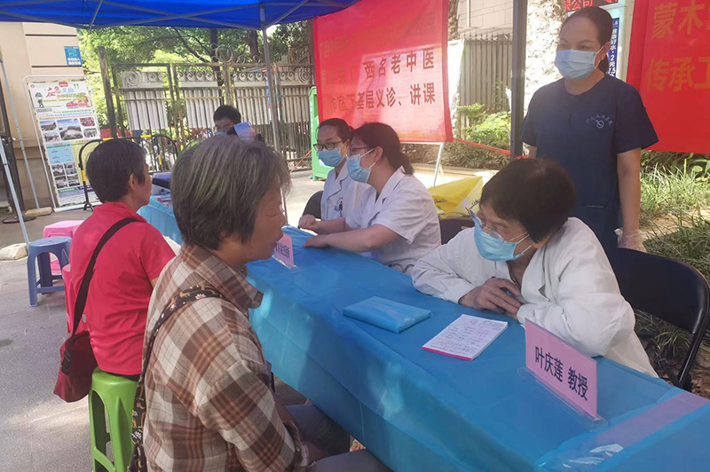为继承和发扬广西名中医蒙木荣教授的学术思想和临床经验,将蒙木荣教授的学术思想和学术经验带到基层,服务社区群众,7月30日,我院广西名中医蒙木荣传承工作室团队叶庆莲主任医师、奉红梅副主任医师、龙韵副主任医师、冉龙娇主治医师等4人来到北湖中社区居委会所辖社区进行义诊及健康宣教等活动。