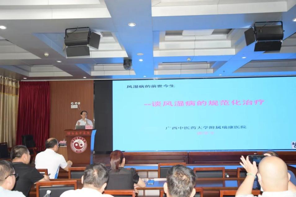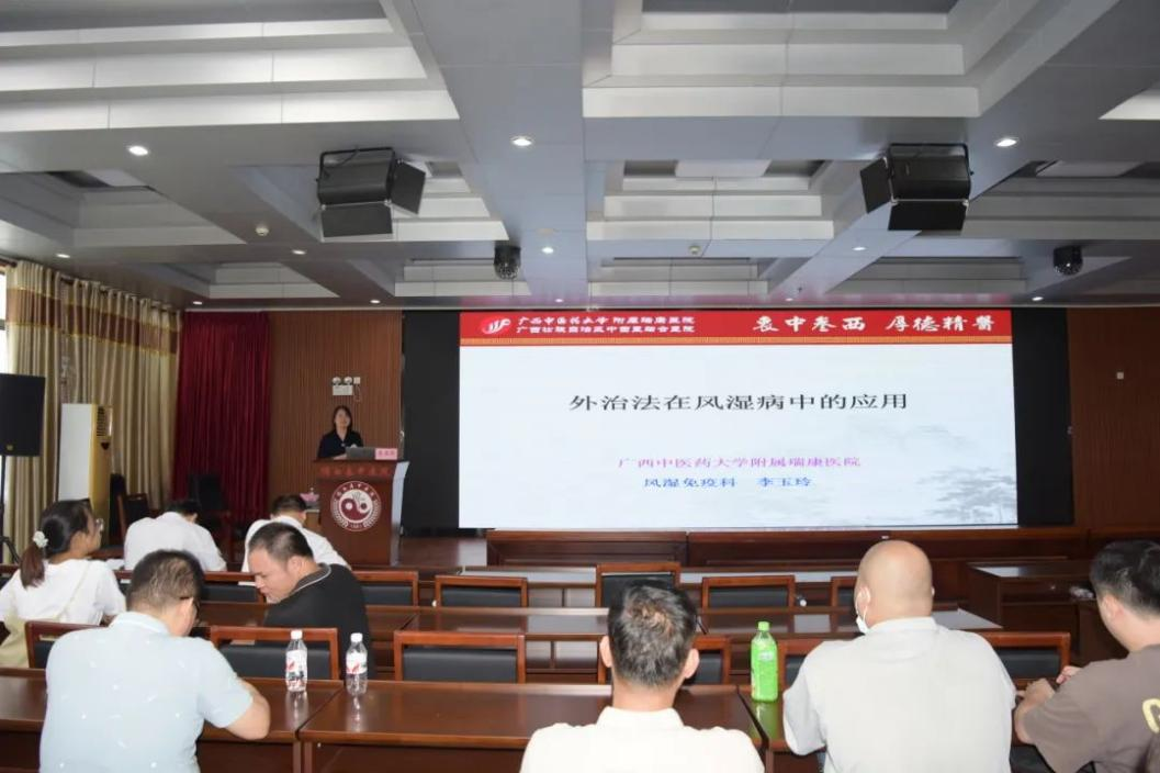 在随后进行的学术讲座中,广西名中医庞学丰教授、庞健丽主任医师、李玉玲副主任医师分别以《风湿病的规范化治疗》《消渴痹证(糖尿病周围神经病变)中医诊疗方案》及《外治法在风湿病中的应用》为题进行了授课。他们倾囊相授自己多年的临床经验和诊疗思路,学员们学习态度积极,为基层医务人员打开临床诊疗思路,传播治疗新理念。