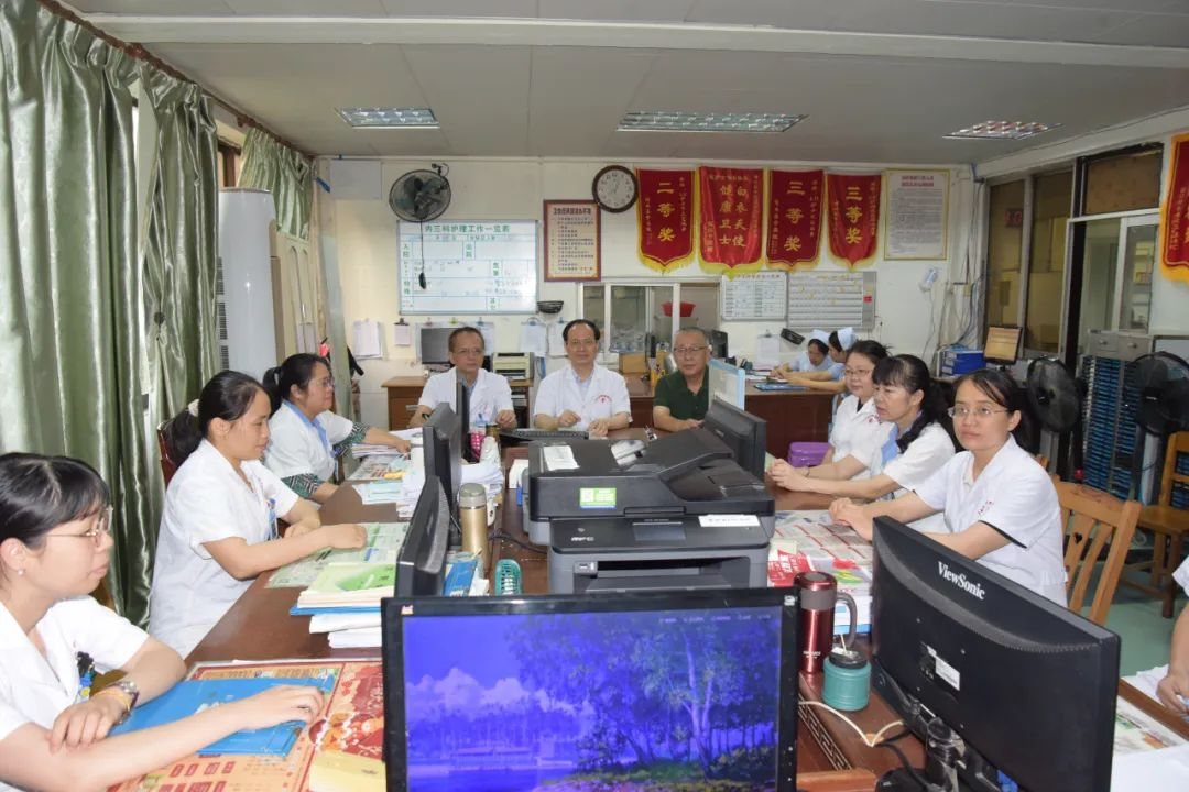 随后,专家团队深入内三科病区进行教学查房及疑难病例讨论。在教学查房环节,庞学丰教授在听取了管床医师对病人病史以及目前的治疗方案和治疗情况的详细汇报后,对患者进行体格检查,详细分析和讲解了目前的处理方案、预后及治疗要点,评估判断了患者病情,并耐心为医护人员答疑解惑,为患者制定详细治疗方案。患者及家属表示在家门口就能享受到了与三甲医院专家“面对面、一对一”的诊疗服务,感到非常高兴。在病例讨论环节,庞学丰教授以《风湿病的规范化治疗》为题,结合多年临床经验,通过病例分析,针对患者病因病机、发病季节、发病特点、临床表现,开具了治疗方药。同时与内三科的医护人员就中医特色诊疗技术、专科疾病诊疗方案以及学科建设等多方面进行了讨论和研究,并针对疑难杂症提出治疗方案指导意见,进一步拓展了医务人员的临床诊断思路及临床管理思路,提升了对疾病的诊治能力。