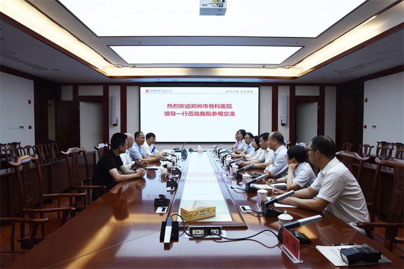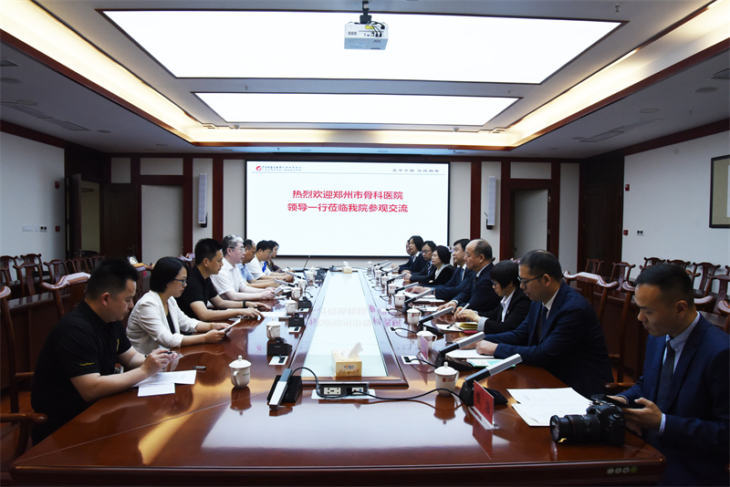 高宏君书记对郑州市骨科医院党委书记梅伟一行的到来表示热烈欢迎。他介绍了我院发展历史以及国医大师馆在学科建设、人才队伍建设等方面的情况,在国医大师韦贵康教授的带领下,我院不断推动中医骨科的理论创新和技术进步,形成了一系列具有特色的诊疗方法和理论体系。