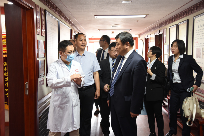 座谈会后,梅伟书记一行参观了国医大师馆、治未病中心、正骨推拿理疗馆、国医堂名医馆、中医药博物馆、院史馆、射波刀治疗中心、急诊科等科室。