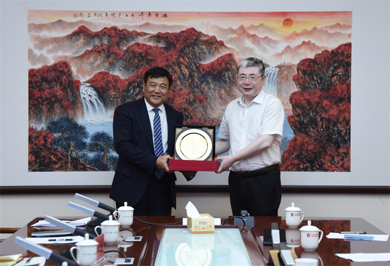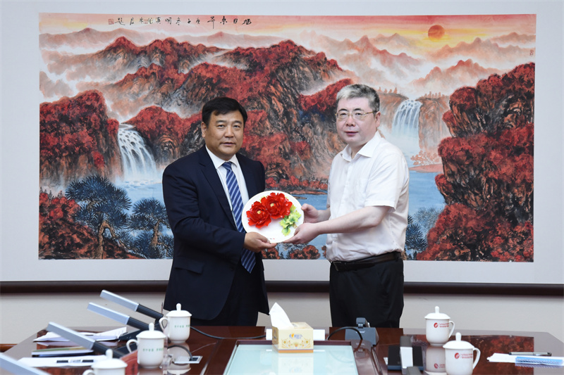 随后,高宏君书记还向梅伟书记赠送医院纪念牌,梅伟书记回赠了具有当地特色的牡丹纪念盘。