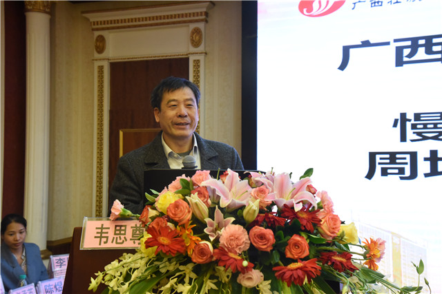 为构建广西中西医结合临床研究平台,加强广西重症肝病诊疗中西医结合学术交流,12月7日,由广西中西医结合学会主办,我院承办的广西中西医结合学会重症肝病及人工肝治疗分会成立大会暨慢性及重症肝病诊治进展学习班、周培郁名老中医经验传承培训班在南宁召开。我院院长唐友明、副院长韦思尊出席会议,北京肝胆相照公益基金会秘书长周海洋,广西中西医结合重症肝病及人工肝治疗分会常委及委员,全国各地医院的肝病科专家学者近200人参加会议。