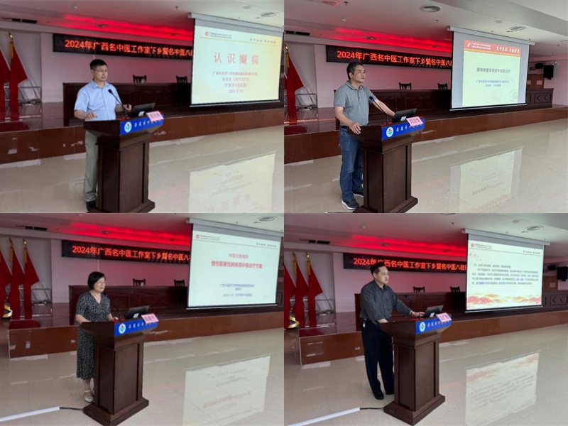 随后,专家团队郑东林、广西名中医刘汝专、张永全、陈斯宁、白广德分别以《消化内镜技术在胆胰疾病中的应用》《腰椎椎管狭窄的中西医治疗》《认识癫痫》《慢性阻塞性肺疾病中医诊疗方案》《中西医结合治疗恶性肿瘤体会》为题,分享了各自多年的从医经验及临床思路,平果市各乡镇卫生院、社区卫生服务中心及市直医疗机构100余名医务人员参加讲座。