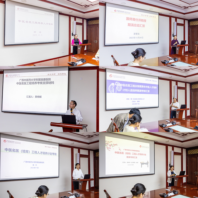 为了认真贯彻落实党和国家推动中医药振兴发展的重大战略部署,大力加强中医药人才的培养,传承创新名老中医学术思想,营造名医辈出的良好氛围,打造名院名科名医工程,建立更完善的中医人才培养体系,同时为打造广西名中医、桂派中医大师、全国名中医、国医大师等名医名师做好人才储备,我院于2019年遴选了第一批名医工程项目人才9人、名医(培育)工程项目人才12人、雏鹰青年中医人才14人,进行了为期3年的跟师学习。目前培养期满,于2023年11月9日组织召开期满考核答辩会。医院院长唐友明教授、副院长韦思尊教授、广西名中医林江教授、广西名中医陈锋教授、广西名中医唐耀平教授、广西名中医牛豫洁教授、广西名中医黄彬教授、广西名中医黄适教授出席本次答辩会并担任专家评委。