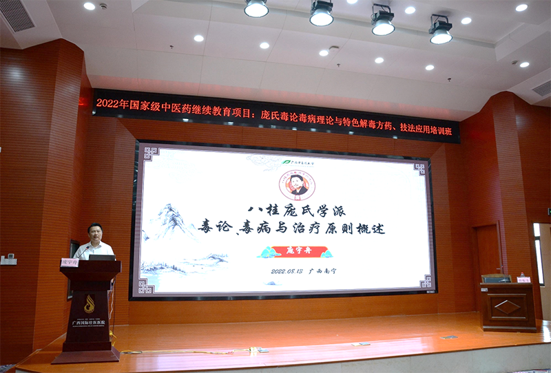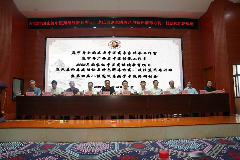 8月13日-14日,由广西中医药大学主办,我院庞宇舟全国名老中医药专家传承工作室、庞宇舟广西名中医传承工作室、八桂庞氏毒病学术流派承办的2022年国家级中医药继续教育项目“庞氏毒论毒病理论与特色解毒方药、技法应用培训班”暨第四届“八桂庞氏毒病学术流派研讨会”在南宁举办。广西中医药大学党委副书记、全国老中医药专家学术经验继承工作指导老师、八桂庞氏毒病学术流派创始人庞宇舟教授出席开班仪式并作专题学术报告。此次培训班采用线下、线上相结合的形式开展,线上参会人数超4万人次。本次培训班内容涵盖毒论毒病理论学术报告与解毒技法培训,同时,邀请了国内知名民族医药专家作大会专题报告。
