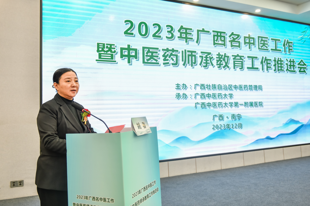 姚春在致辞中表示,广西中医药大学深化人才发展体制机制改革,深入推进中医药人才队伍建设,牢固树立桂派中医“铸医魂、重经典、强师承、突特色”人才培养理念,构建桂派中医“院校+师承”人才培养模式,不断提升人才培养质量和水平。传承和发扬国医大师、全国名中医的学术精华和技术专长,凝聚桂派中医大师、广西名中医等名医方阵智慧力量,把握做好新时代中医药人才工作的重点任务,切实扛起做好广西中医药人才工作的使命担当,推动中医药人才发展和中医药传承创新发展高度匹配、深度融合,促进广西中医药人才工作迈上新的台阶,为健康广西、健康中国建设贡献力量。