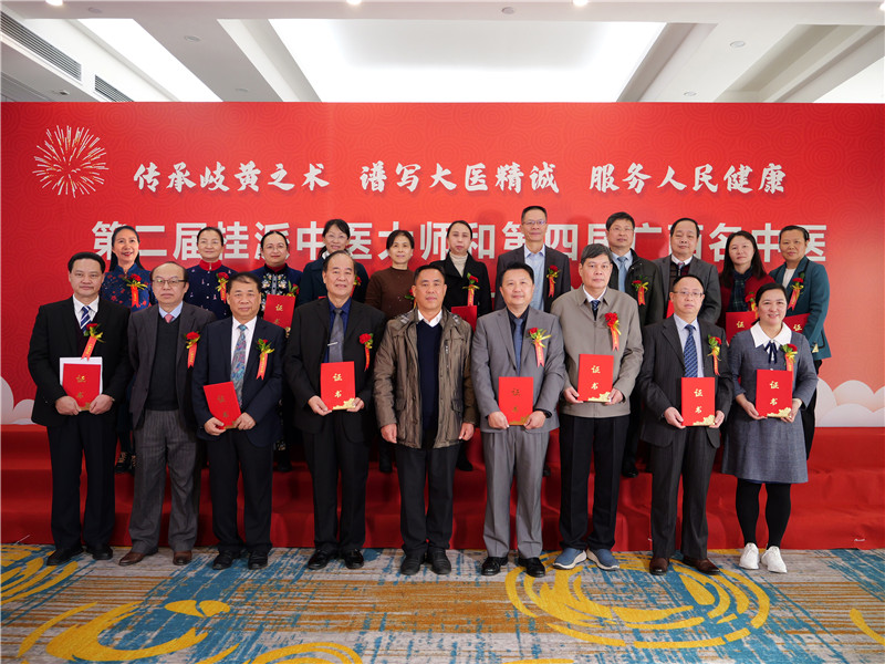 会上举行第二届桂派中医大师和第四届广西名中医证书颁发仪式,国医大师、全国名中医和自治区中医药局、广西中医药大学、自治区卫生健康委人事处有关负责同志为入选专家颁发证书。