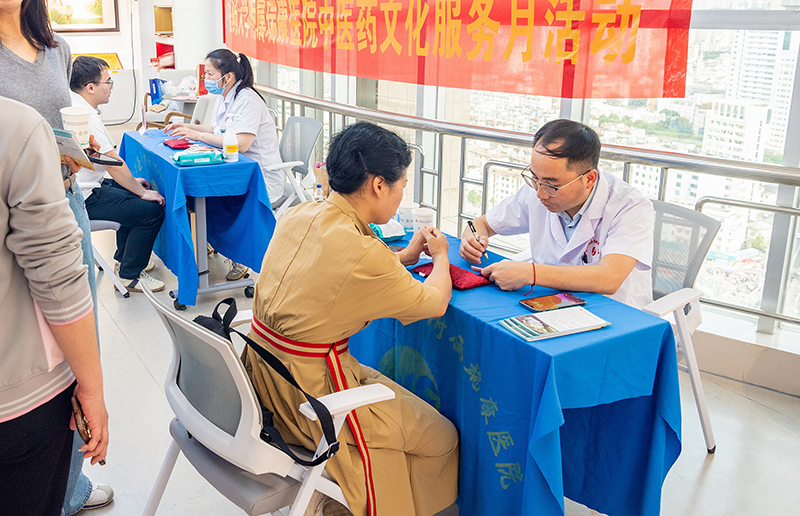 活动现场,来自国医堂名医馆、中医妇科、乳腺病外科、消化内科等多个科室的专家,为财政厅干部职工提供了面对面诊疗服务。专家们通过望闻问切,耐心解答各类健康问题,针对常见病多发病、慢性病及亚健康状态给出个性化调理方案。在近4个小时的健康义诊时间里,专家们耐心细致地为前来咨询的干部职工把脉问诊、进行体质辨识,不仅针对个人体质定制专属调理方案、解答健康疑惑,还传授中医健康减重塑形方法,以及穴位按摩、饮食调理、应时养生等简便易行的养生技巧,赢得大家的高度赞誉。唐院长凭借专业素养与亲和力,让前来咨询的干部职工深切感受到中医药的魅力,纷纷称赞道:“中医药是老祖宗留下来的宝贵财富,唐院长讲解通俗易懂,让我对自身体质和中医调理有了全新认识。原来中医辨证施治、标本兼治,并不是‘慢郎中’,这样的服务太贴心了!” 我院中医特色建设科主任梁明坤博士也备受欢迎,他讲解时妙语连珠,深受大家喜爱。