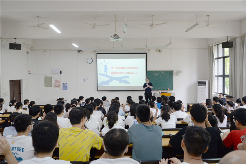 “你们为什么选择临床医学专业?”在课堂上,高宏君教授用这个问题开启了和同学们的交流。讲座中,高宏君教授以《不忘初心、医路前行》为题,详细介绍了临床医学专业的相关情况,从临床医学专业的介绍、临床医学专业的建设、临床医学专业人才的培养以及如何做好个人在校规划四个方面与新生进行探讨。高宏君教授告诉同学们,做一名医生不仅要有一颗仁心,更要有扎实的专业技术,希望同学们不仅要正确地认识自己,也要对临床医学专业有充分的理解,同时做好面对各种困难的准备。他结合自身经历,与同学们分享了在校学习的经验,嘱咐同学们做好学习和人生的规划。