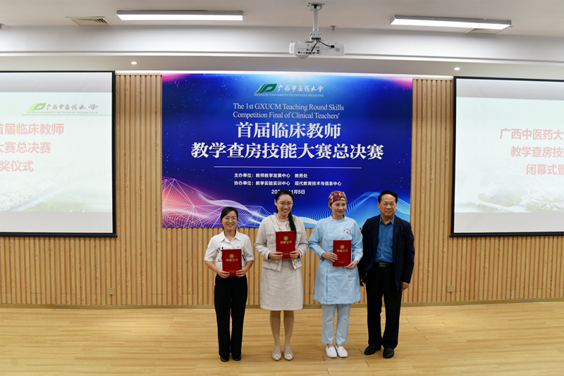 11月5日,由广西中医药大学教师发展中心、教务处共同主办的首届临床教师教学查房技能大赛总决赛在仙葫校区自诚楼教师教学发展中心举办。学校党委副书记庞宇舟到场观赛并指导,我院党委副书记、副院长陈日兰陪同。