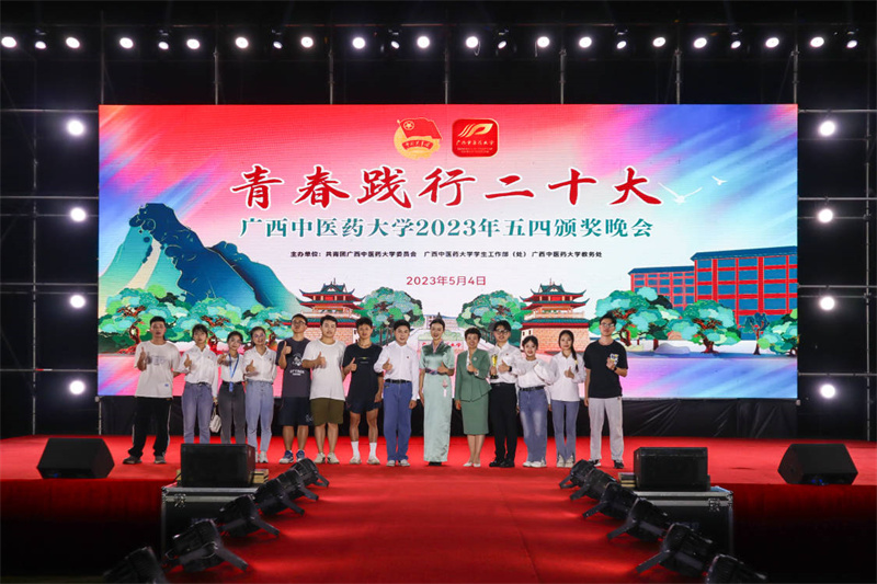 5月4日晚,广西中医药大学在仙葫校区田径场举办“青春践行二十大”五四优秀青年颁奖晚会,瑞康临床医学院学生团总支学生会以表演《平凡天使》手语节目献礼五四晚会。