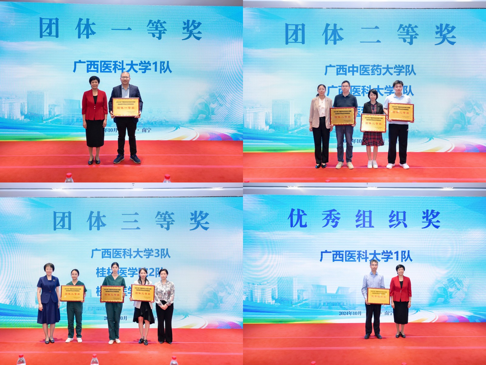 在闭幕式上,总裁判长、上海交通大学附属第一人民医院林健教授对本次竞赛进行详细点评并宣布竞赛结果,指出了各参赛队在比赛中展现的优点以及不足。经过激烈角逐,最终评选出团体一、二、三等奖,优秀组织奖及优秀个人奖。广西医科大学1队荣获团体一等奖及优秀组织奖,广西中医药大学队、广西医科大学2队、广西医科大学4队荣获团体二等奖,广西医科大学3队、桂林医学院2队、桂林医学院3队荣获团体三等奖。