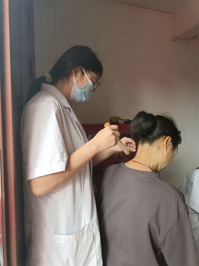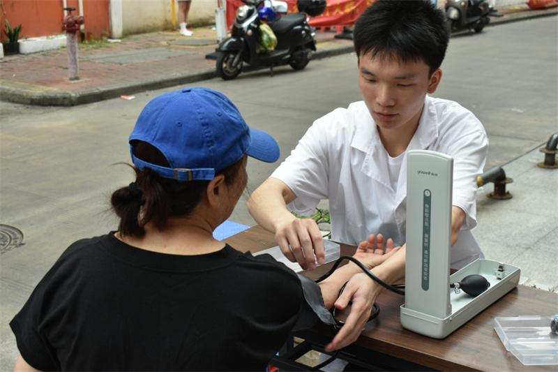 活动现场,志愿者们早早地搭建好义诊台,以饱满的热情迎接每一位前来咨询的居民。他们充分发挥自己的专业知识,为居民们提供量血压、艾灸、手法按摩、健康咨询等多项医疗服务。在量血压区域,志愿者们操作娴熟,一边精准地读取数据,一边耐心地询问居民的日常饮食和作息习惯;在艾灸区域,志愿者们手法专业,为居民们驱散身体的疲惫与寒气;在手法按摩区域,志愿者们轻柔而有力地按压穴位,缓解着居民们身体的疲劳。活动中,志愿者们耐心倾听居民们的身体状况和健康困扰,用通俗易懂的语言为他们讲解疾病的预防和治疗方法,为她们制定个性化的健康建议。“真的很感谢这些孩子们,在母亲节还想着我们,不仅给我们检查身体,还教了我们很多健康知识。”一位参与义诊的女士说道。
