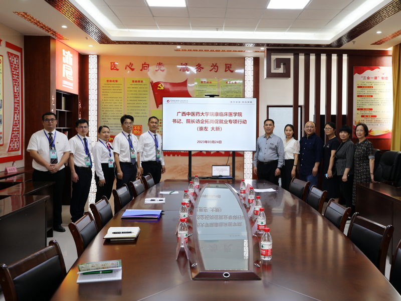 为贯彻落实国家和学校关于全面开展2023年促就业工作的决策部署,3月24日,广西中医药大学瑞康临床医学院院长唐友明,党委副书记、副院长陈日兰带队到大新县中医医院开展访企拓岗促就业工作并进行专题座谈会。