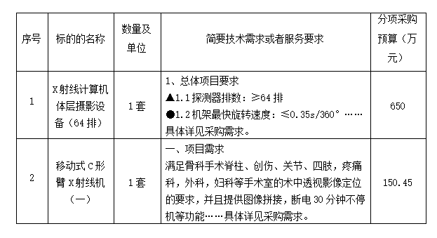 项目名称:医疗设备采购项目(一)