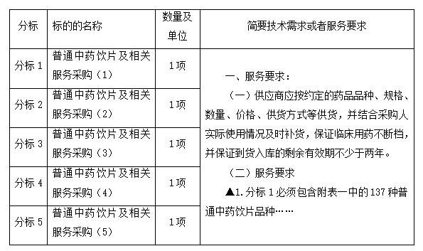 项目名称:普通中药饮片及相关服务采购项目