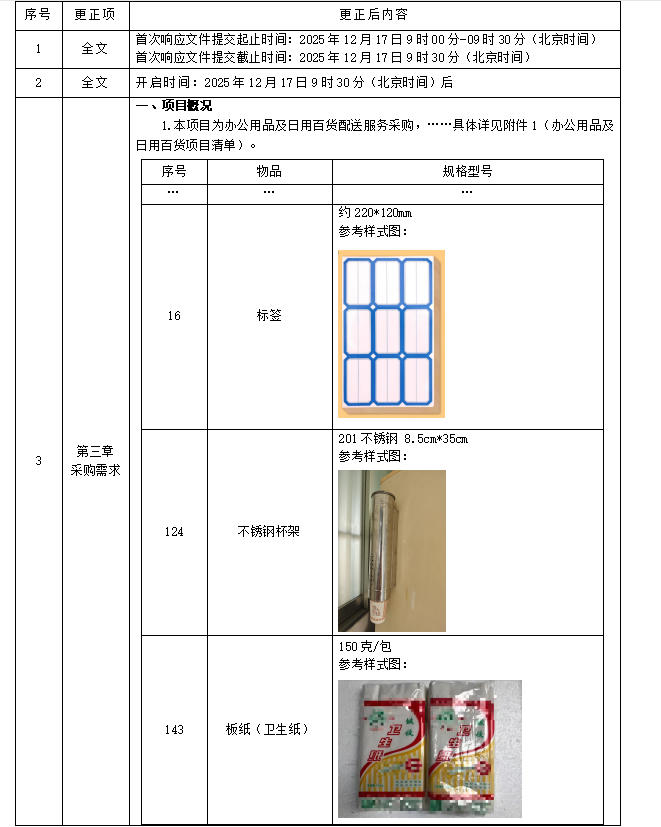 原公告的采购项目名称:办公用品及日用百货定点供应商服务采购