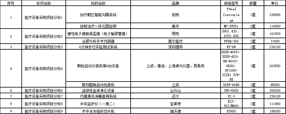 二、项目名称:医疗设备采购项目