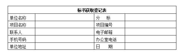 4.2、方式二:法定代表人或委托代理人携带资料获取,有效的营业执照副本复印件、法人授权委托书原件及授权代理人身份证复印件【委托代理时必须提供,明确委托权限及时间】。上述资料均须加盖单位公章,将上述材料的扫描件作为邮件附件,标书获取登记表(按下表内容填写)作为邮件正文,发送至2199350141@qq.com邮箱,资料有效且合格方可获取采购文件。