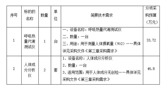 项目名称:呼吸热量代谢测试仪等医疗设备采购项目(重2)