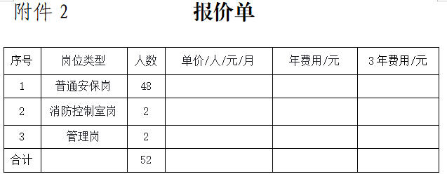 报价说明:本项目所需安保服务采购报价为履行合同的最终价格,该价格已包含人工(含工资、社保、福利等)、工具设备(通讯设备、记录仪等)、防护器材装备(防爆头盔、盾牌等)、跨院区临时/紧急任务支援费用、税费等全部相关费用。对于本文件中未明确列明,但响应供应商基于岗位工作实际需求判断为必需的费用,均需统一列入总报价,采购人不再另行支付任何其他费用。