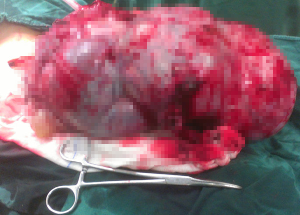 从小黄肚中取出的巨大畸胎瘤
