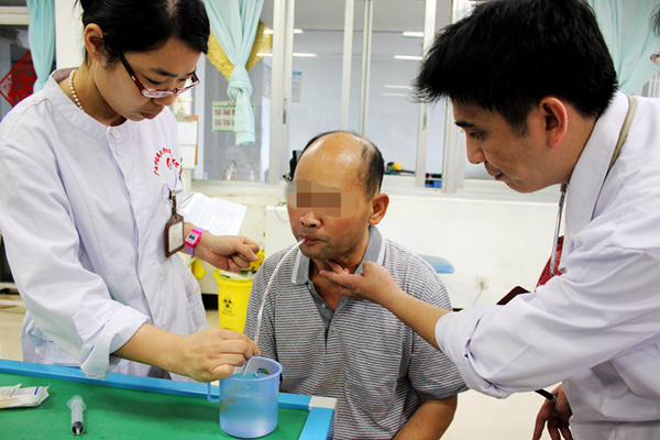 经过一段时间的治疗,覃伯的病情渐趋稳定,但是吞咽困难的问题让他的生活质量很差,只能靠留置胃管来摄入身体所需营养。发病期间恰逢新春佳节,但别说美味佳肴,就是稀粥和水覃伯都咽不下,走到哪都要带个痰盂,因为口里分泌的唾液都咽不下去。家人因为他的病都不敢在他面前吃东西,9岁的小女儿还为此心疼落泪。看到家人为他难过,覃伯也不能过分表达情绪,因为他连说话都得很小心,不仅声音嘶哑难以发音,万一不小心发生误吸,还会导致肺部感染。