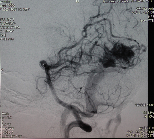 李医生解释,李明患上的病准确的说是右枕叶动静脉畸形并出血。动静脉畸形,是动静脉之间缺乏正常毛细血管联通,导致动静脉直接联通形成畸形血管团块,是一种先天的发育异常。在青年人多见,并且男性稍多于女性,64%在40岁以前发病。据文献报告,高发年龄为15到20岁,年轻人发病的危险高于老年人。动静脉畸形的后果,轻者出现失语、肢体偏瘫、意识障碍,癫痫,重者造成植物状态,乃至危及生命。