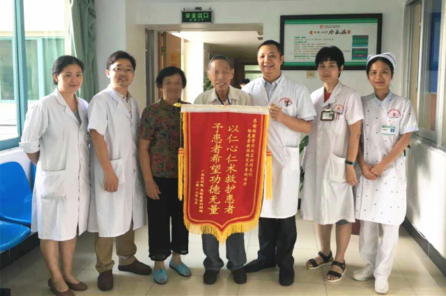 久遭病痛折磨的刘老十分担心自己的身体,每次查房都会询问很多甚至重复的问题,但医生和护士不管多忙多累,都会一如既往地热情解答,耐心开导,解除他的思想负担。对此刘老心里十分感激,赠与“以仁心仁术救护患者,予患者希望功德无量” 锦旗,以感谢为他辛苦付出的肾内科北区医护人员。