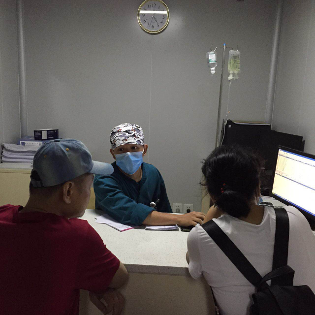 图片中,一名男医师坐在医患沟通室的台前,左手手背穿刺着针管,连着身旁的点滴瓶输液,右手则不停地操作电脑,给患者家属解释病情和治疗方案。这位医师叫刘品晶,是我院重症医学科的一名医师,几天前,刘医师突然感到头晕头痛,喉咙痛,不得不利用下午病患家属探视时间为自己输液。科室负责人发现后,马上“勒令”他回家休息,痊愈后再来上班。但是重症医学科是一个特殊繁忙的科室,病人病情危重,一年到头病人都不会少,有病人病情好转转至普通病房,紧接着就会有新收入危重病人,加上科室两名医师被抽调参加广西卫生应急技能竞赛活动,在这种特殊的情况下,刘医师忍着病痛,选择放弃休假,坚守岗位,协助其他医师一起完成工作。