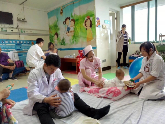 2016年3月,一位来自广东的两岁的女性患儿不会站、不会走、不会说话,性格内向,胆小爱哭,厌食并爱生病,在别的医院就诊时,医生说可能要练两年才能走路,经熟人介绍来到瑞康医院儿科就医,第一次来时,就连别人看她一眼,碰一个手指头都哭,拒绝所有的训练,爸爸妈妈也很焦虑,因心疼加无奈差点要放弃治疗了,韦林安立即根据患儿的特点选择了适合的儿歌,配合丰富的表情,唱给她听,建立了信任感,等其感兴趣后,接着开始给宝宝轻柔推拿。坚持两天后,宝宝就开始会说“要师师”(意为要老师),主动拉妈妈的手要来医院做康复。后来,训练前她主动和老师碰头,表示友好合作。坚持二十天后,小孩的运动能力、语言、性格都有明显的改善,家长高兴得在育儿群里报喜,说我的孩子终于正常了。