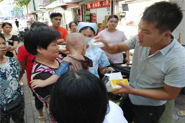 9月14日下午4点40分,广西中医药大学附属瑞康医院接到南宁急救医疗中心120调度电话:华西路52号一名儿童被困在房屋夹缝中,动弹不得,情况十分危急。瑞康医院急诊科韦克凡医师立即带领院前急救团队迅速赶到现场,发现一名1岁半左右小男孩的头部被卡在不到20厘米宽的墙柱缝中,被发现时已经被困近40分钟。急救团队立即与一同赶到的消防官兵展开紧急救援。公安民警做好现场警戒,维持秩序,消防官兵一边跟小孩子进行交谈,分散孩子的注意力,稳定情绪。