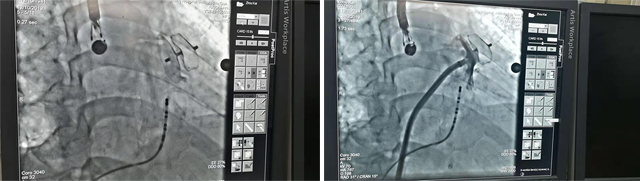 本次手术,心血管内科一区电生理团队是在超声科、麻醉科以及介入导管室医护团队的通力配合下,在中山大学附属第一医院心血管内科何建桂教授的指导下顺利进行的。通过患者股静脉将导管送至右心房,由右心房穿过房间隔进入左心房,封堵器通过导管被送至左心耳部位,完全封堵住左心耳口部,隔绝血栓形成的最常见部位,从而从根源上避免了血栓形成导致各种疾病的产生。