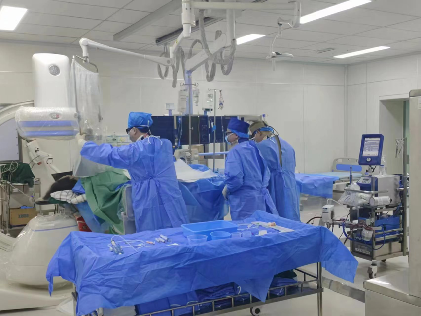 2023年7月11日上午,81岁的梁奶奶因“反复胸闷1月余”到广西中医药大学附属瑞康医院空港院区就诊,经检查后确诊冠状动脉粥样硬化性心脏病,左主干+三支病变,前降支次全闭塞病变。心血管内科的黄修解主任评估患者病情需要进行PCI+支架植入术,可由于患者年龄大、病情危重、有既往介入时心跳骤停史,手术风险大,经与病人家属沟通,同意ECMO(体外膜肺氧合)支持下进行经皮冠状动脉介入(PCI)术。黄修解主任立即联系我院重症医学科伍民生主任,迅速对病人进行评估,并制定手术方案。