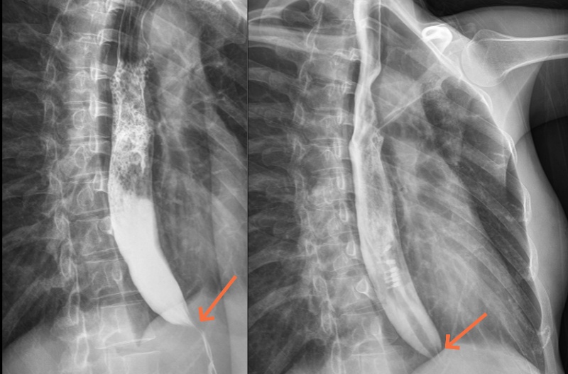 李女士手术前(左图)造影提示食管扩张,成“鸟嘴样”改变,手术后(右图)改善