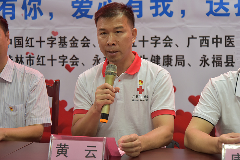 黄云代表广西红十字会向一直关心和支持红十字事业发展的桂林市委、市政府及桂林市各级爱心单位和部门表示感谢。他指出,中国红十字基金会通过国家彩票公益金项目持续开展救助先心病患儿的“红十字天使计划--天使阳光行动”,作为广西唯一的“红十字天使计划--天使阳光行动”定点合作医院,广西中医药大学附属瑞康医院至2020年通过该项目共救助了先天性心脏病患儿1070名,被中国红十字基金会评为优秀合作医院。希望借助本次活动,让桂林市辖区困难家庭的先心病患儿获得适当的医疗救助,并引导全社会共同关注青少年身心健康,努力减少因病致贫返贫的因素。