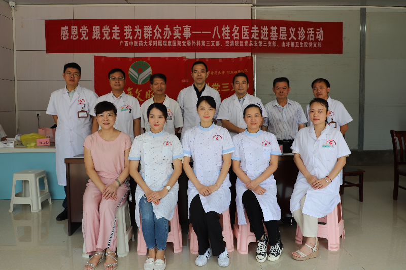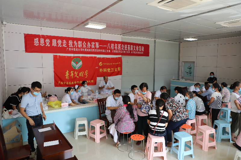 为进一步将党史学习教育成果转化为实际成效和为群众服务行动,7月27日,外科第三党支部书记梁泰生,空港院区党总支副书记、副院长黄建东,空港院区党总支第三支部书记王克净带领医务工作者团队到山圩镇卫生院开展“感恩党,跟党走,我为群众办实事——八桂名医走进基层”义诊活动。